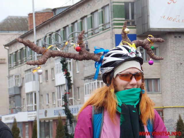 Участь брали всі бажаючі, але обов’язково маючи при собі велосипед і хоча б один аксесуар новорічних персонажів.