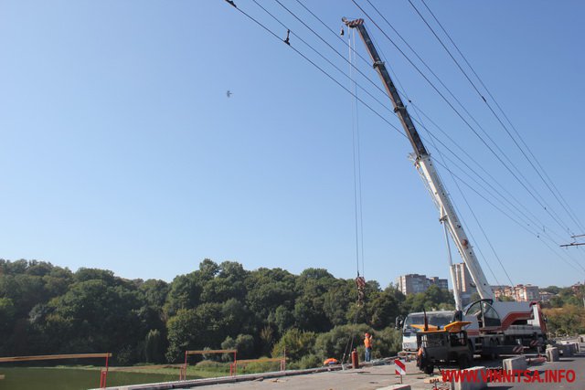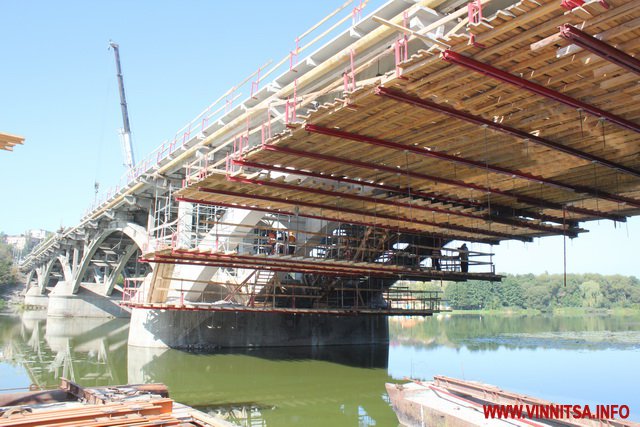 Триває ремонт Київського мосту у Вінниці, який розпочався у березні. На проїжджій частині зняли перила та знесли шар дорожнього покриття. З тилової частини також проводять укріплення.