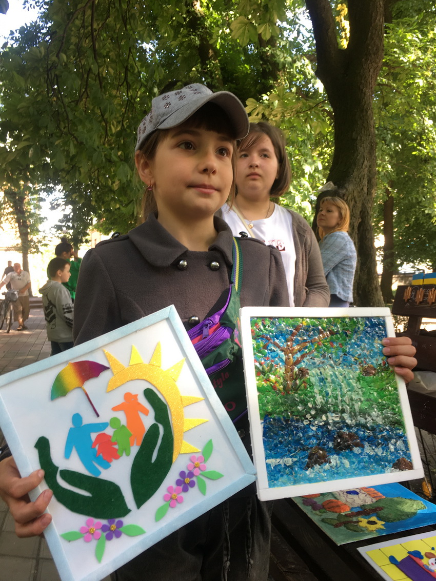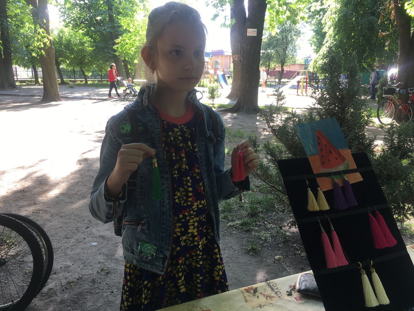 9-річна Евеліна Гоноровецька полюбляє робити прикраси. На ярмарок вона принесла сережки, кільця і браслети. Відвідувачі часто зупинялися біля її прилавку. А поруч біля неї свої роботи виніс 10 річний Ростислав. Його батько зараз теж виконує військовий обов’язок і захищає країну. Тому хлопець із задоволенням доєднався до благодійної справи.