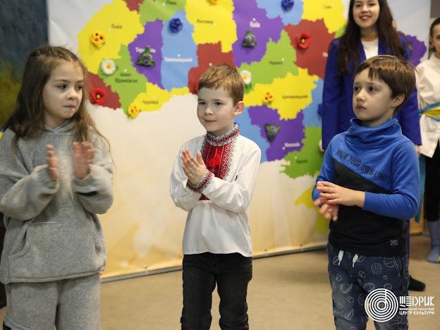 Діти співали українські пісні, хором виконували Державний Гімн, прикрашали квітами мапу України і спілкувались між собою.