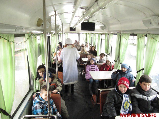 5 січня у Вінниці діти-переселенці із зони проведення АТО відвідали ознайомчу новорічну екскурсію. Дітей зустрів Дід Мороз разом з трамвайчиком «Везунчиком». Хлопчикам та дівчаткам показали місто, історичні пам’ятки архітектури та розповіли цікаві історії, пов’язані з Вінницею.