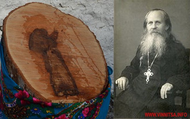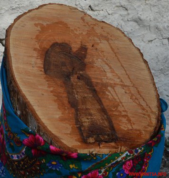 «На зрізі дерева проявився силует людини. Одні в ньому вбачають образ монаха, інші уточнюють – це зображення колишнього священика-цілителя Івана Дубровського