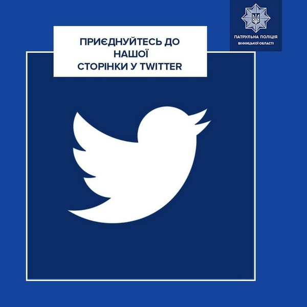 Про події та інформаційні оголошення від Патрульної поліції Вінниччини користувачі соцмереж можуть читати і на платформі Twitter. Задля цього там створена офіційна сторінка, аби за гаджетами об’єднати вінницьких підписників різних аудиторій.