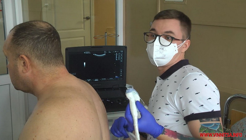 У Вінницькій області зникають черги на комп'ютерну томографію легень. Для обстеження «ковідних» пацієнтів в опорні лікарні регіону закупили десять портативних УЗД-апаратів. У них є спеціальні пульмонологічні датчики, які виводять на екран чітку картину. І не опромінюють організм, як КТ або СКТ. Лікарі, які вже працюють з цією апаратурою, кажуть – тепер не потрібно нікуди транспортувати пацієнта. УЗД з легкістю переноситься з одного відділення до іншого.