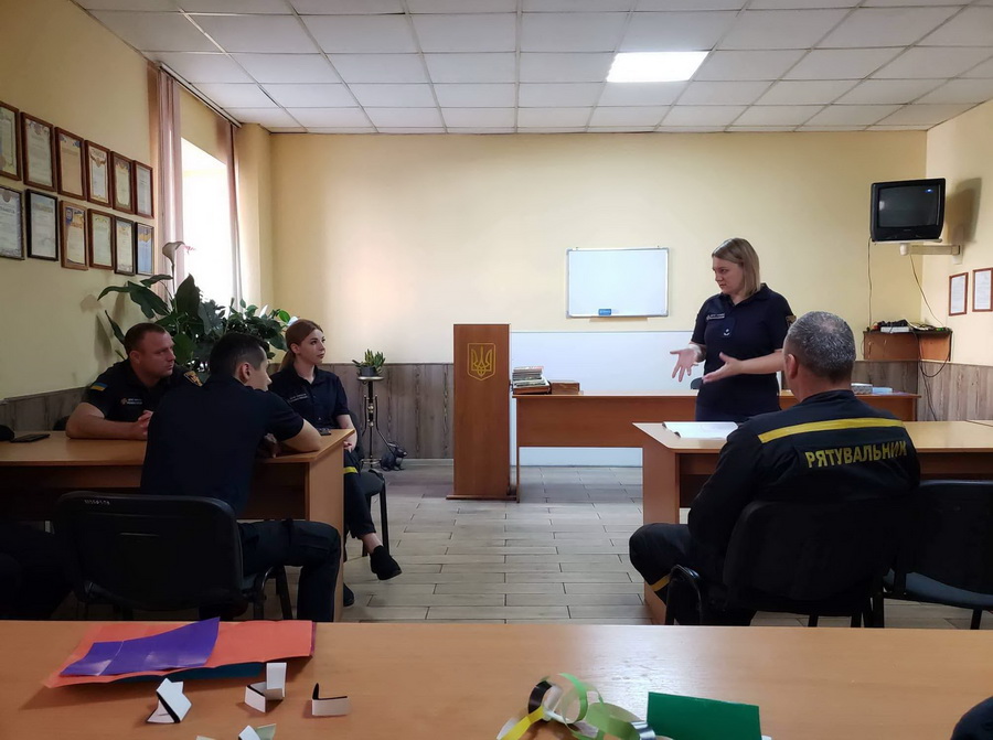 З рятувальниками 4 ДПРЧ м. Вінниці психолог ГУ ДСНС України у Вінницькій області Тетяна Хруленко провела тренінг.