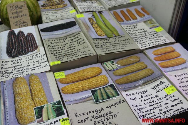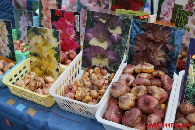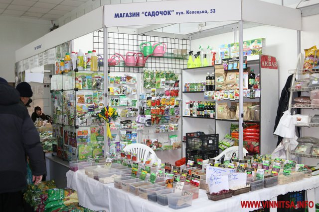 Покупцям пропонують широкий вибір саджанців слив, яблук, персиків, горіхів, груш, вишні, черешні, аличі. Вінничани купують насіння огірків, кавунів, моркви, цибулі, помідор, редису, перцю…