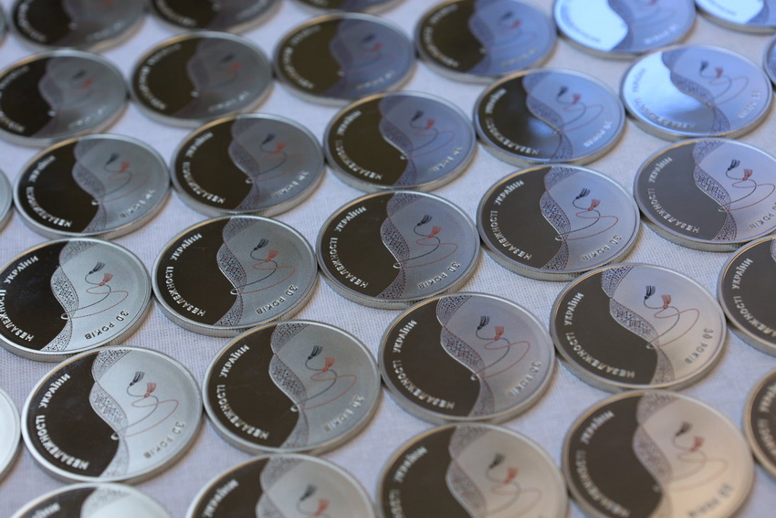 Монета номіналом 50 гривень зі срібла (оздоблена локальною позолотою), тиражем 500 шт. Вводиться в обіг з 17 серпня.