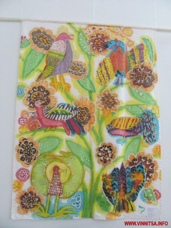 Дитячі роботи дійсно світяться добром. У них все настільки чарівно-казкове, що неодмінно заряджаєшся оптимізмом. І не перестаєш дивуватися, як у 8-14 років можна ткати такі чудові гобелени і розписувати полотно. Окрім цих технік на експозиції вас чекає холодний та гарячий батик, аплікація, колаж, гаптування, моделювання одягу, ляльки з тканини, тощо.