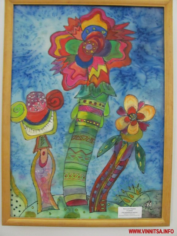 Розмаїття технік доповнене тим, що героями виставки стали не тільки вінничани, а й юні художники із Херсона, Тернополя і Львова. Порівнювати різні школи - ще те задоволення! Учнів дизайн-ліцею Херсона вирізняють складні колажі, вихованців школи мистецтв смт Заводське Тернопільської області - надзвичайно милі та кумедні міні-гобелени, а дітей із Львівської дитячої школи народного мистецтва - масштабні колективні роботи.