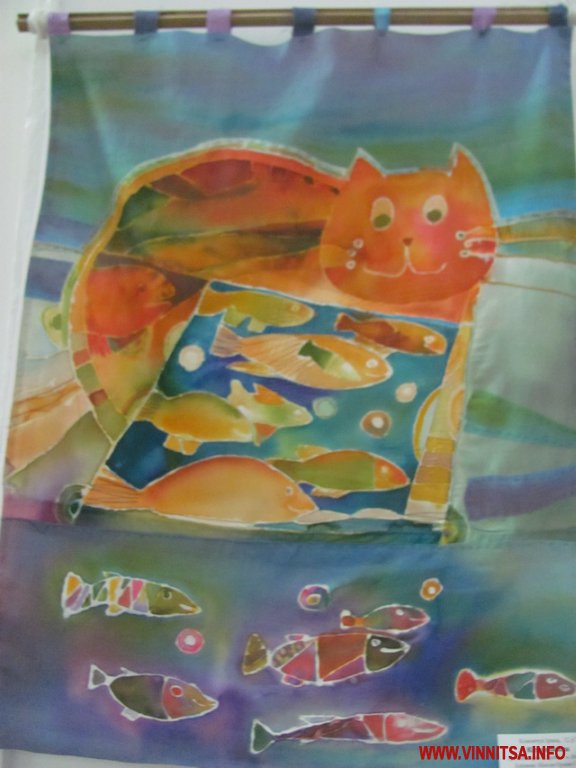 Батик "Осінній котик". Айхгорн Настя, 9 років.