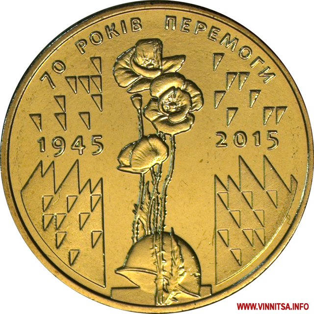 Монета присвячена 70-річчю перемоги над нацизмом в Європі та увічнює подвиг українського народу, його значний внесок у перемогу антигітлеровської коаліції в Другій світовій війні.