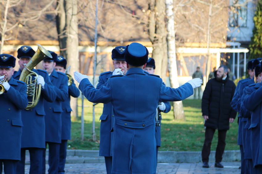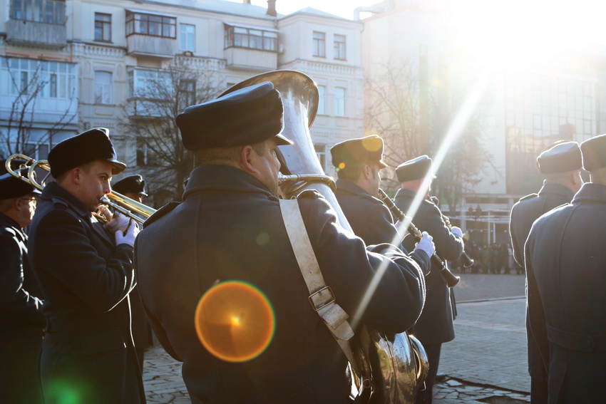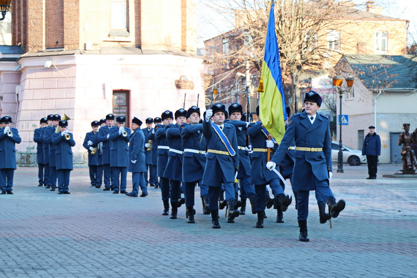 Європейською площею пройшов маршем взвод Почесної варти командування Повітряних Сил в супроводі військового оркестру.