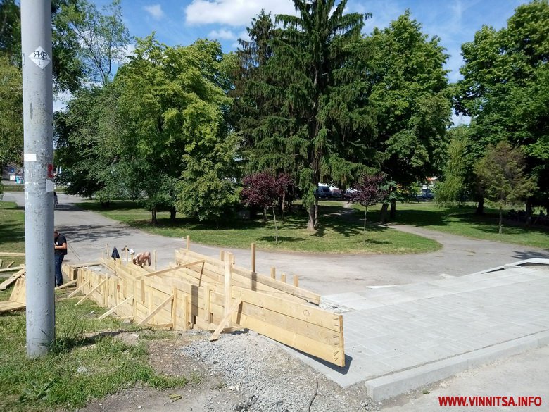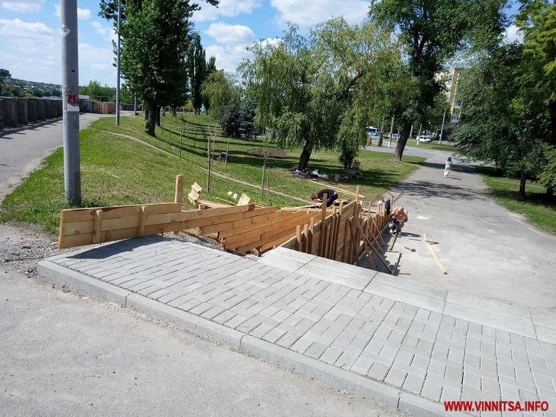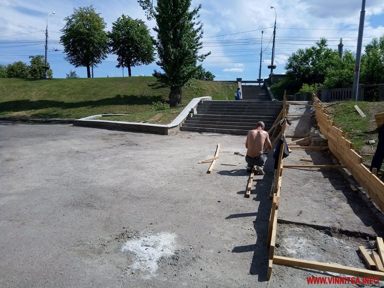 22 травня у Вінниці, до набережної, що з боку Центрального автовокзалу, робітники облаштовують пандус. Напередодні там тривали роботи по реконструкції сходів. Старі, які там знаходилися раніше, знесли, виклали нові з широких блоків.