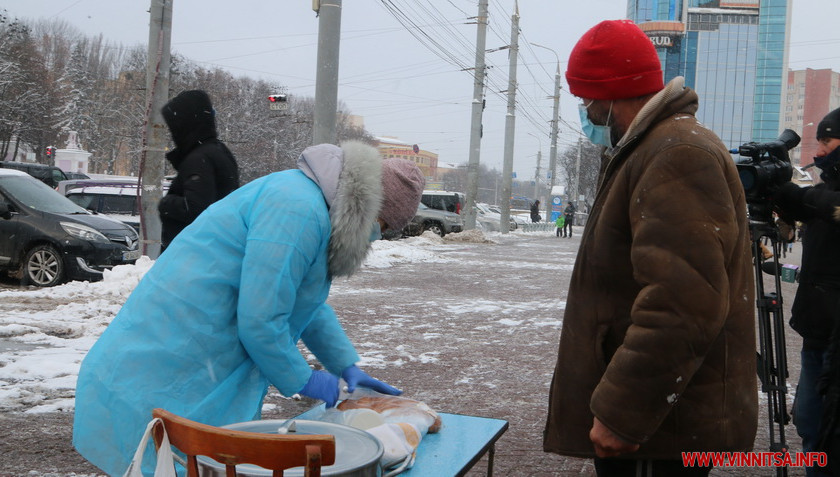 15 січня близько 15:00 на площі біля ринку «Урожай» – незначне скупчення людей. Активісти з ГО «Полум’я надії» привезли сюди 40 літрів гарячого борщу для безпритульних та людей, які з різних причин опинилися в скруті. Подібною діяльністю в співпраці з міською радою благодійники займаються вже два роки. Але в сильні морози це особливо актуально.