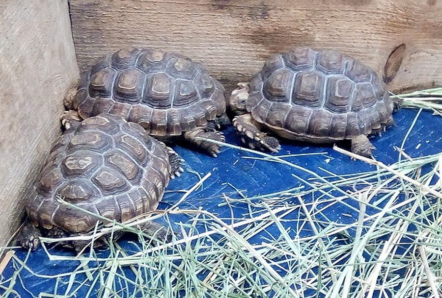 У Подільському зоопарку з’явилися п’ять рідкісних шпороносних черепах. Їх привезли із західноафриканської країни Бенін. Черепахам лише рік. Живуть у тимчасовому вольєрі на карантині, їдять двічі на день – листя салату, кабачок, огірок, помідор, яблуко та моркву.