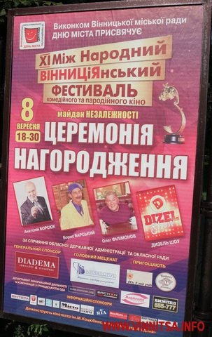 22 серпня в міському палаці мистецтв «Зоря» відкриється XI Міжнародний ВІННИЦіЯнський фестиваль комедійного та пародійного кіно. Церемонія нагородження відбудеться 8 вересня, на яку запрошені відомі «зірки».
