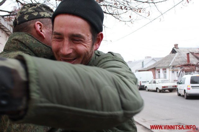 У Вінниці на вул. Некрасова Нацгвардійців зустріли рідні, які чимало пережили, відслідковуючи з новин по телебаченню повідомлення про своїх чоловіків, братів, батьків, коханих.
