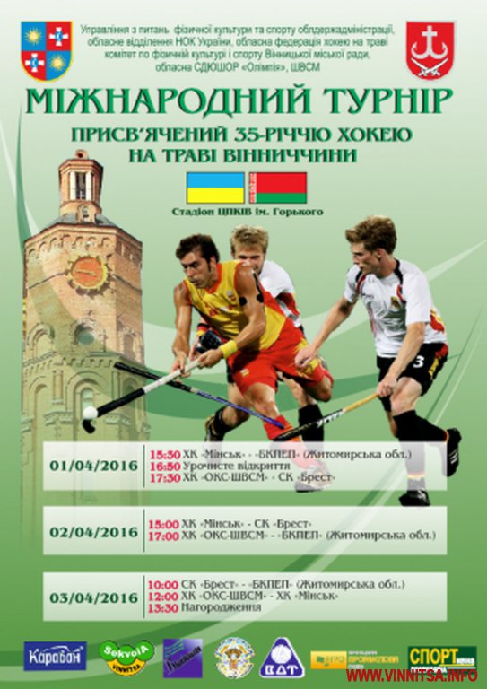 З 1 по 3 квітня у Вінниці проходитиме Міжнародний турнір по хокею на траві. До міста приїдуть команди з Білорусі та з Житомирської області.