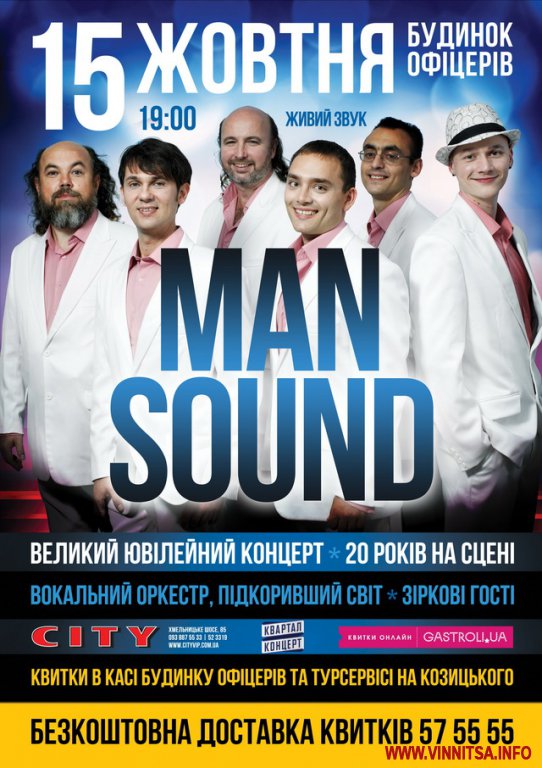 Організатор вінницького концерту «ManSound» - компанія «ВІННИЦЯКОНЦЕРТ». Пригощає - студія-бар «City».