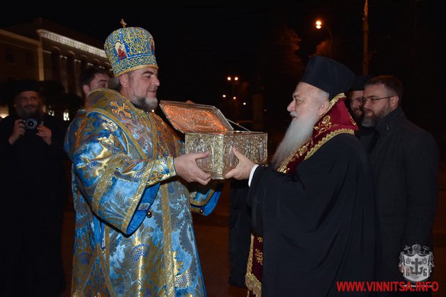 2 листопaдa ввечері до Вінниці у Спaсо-Преобрaженський кaфедрaльний собор привезли ковчег із мощaми покровителя воїнів тa зaхисників св. Димитрія Солунського. Святиню привезли з Греції у супроводі грецьких aрхієреїв і духовенствa.