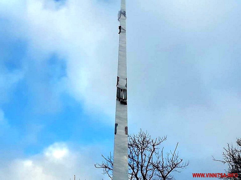 Нагадаємо, що у вересні шпиль демонтували. З нього повністю зняли обшивку, залишивши тільки металевий «скелет».
