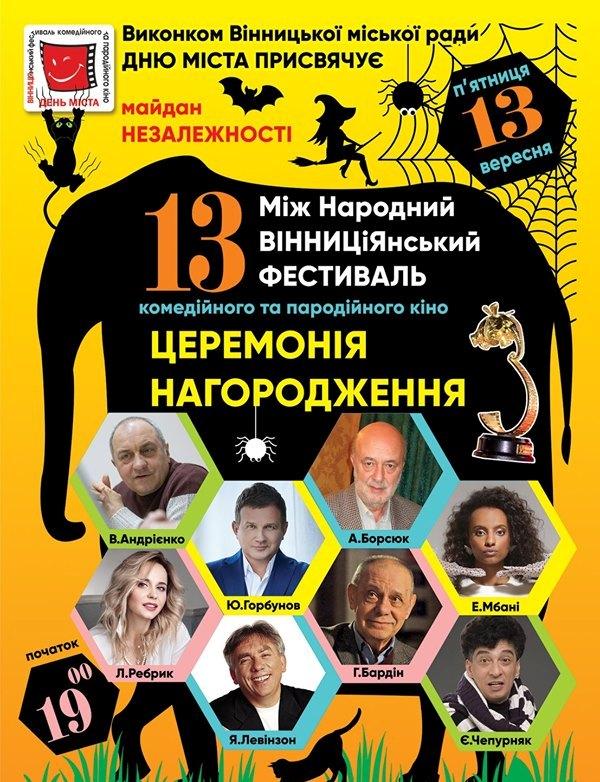 14 вересня Вінниця святкуватиме День міста. Традиційно переддень цьому відбувається «ВІННИЦіЯнський кінофестиваль». Майдан Незалежності, перед міськрадою, збирає любителів кумедних короткометражок.