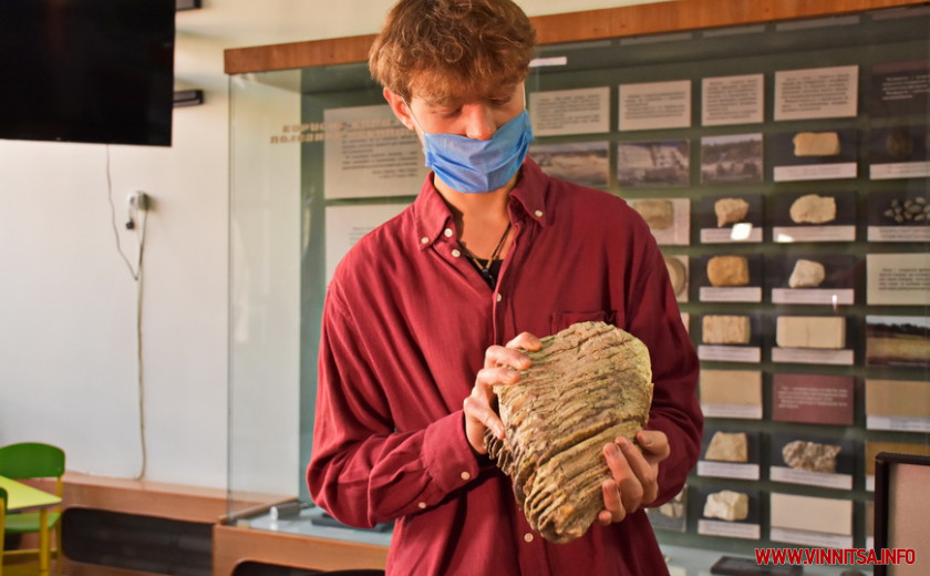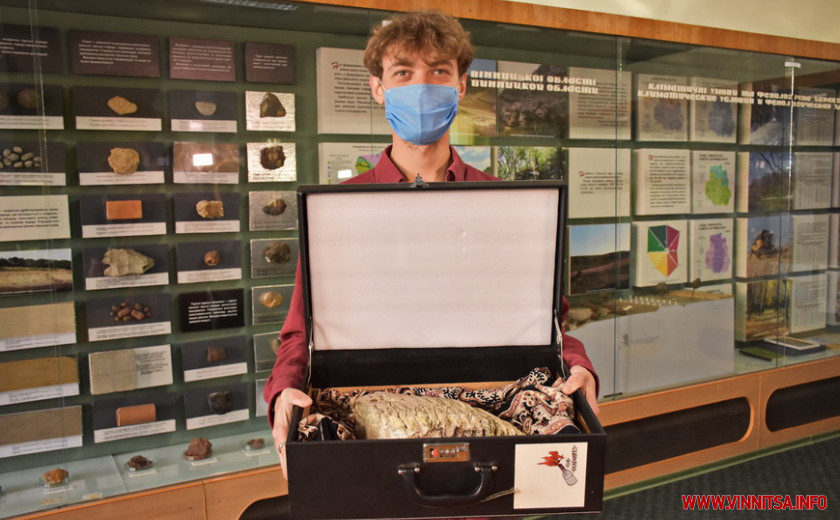 «Ми відпочивали на березі Дністра в Мурованокуриловецькому районі. Не маючи, що робити, ми вирішили просто прогуляти лісом. Судячи зі всього, в ту місцину, де ми знайшли цей експонат, дуже рідко хтось доходив, а нас чогось туди повело. Знайшли місце, де був великий потік талої води, там було багато каміння. Серед того каміння лежав великий шмат. Я знаю, як мають виглядати скам’янілості. Ми вирішили просто взяти його з собою і запитатися у наших друзів-археологів, що це може бути. Вони сказали, що це якась глина чи камінь, який схожий на чиїсь рештки. Але я не повірив, це точно видно, що частина чиєїсь кістки якоїсь великої тварини.