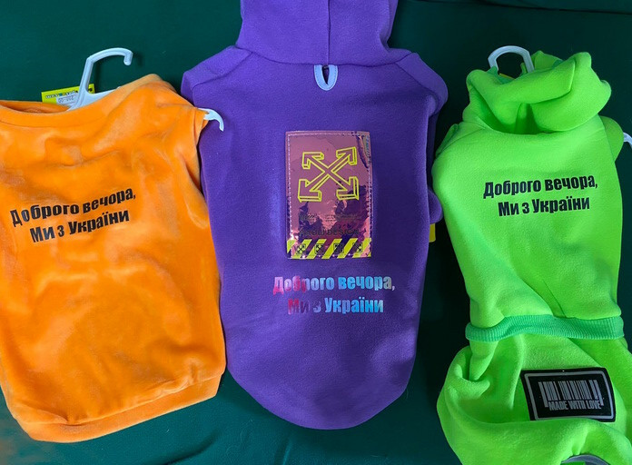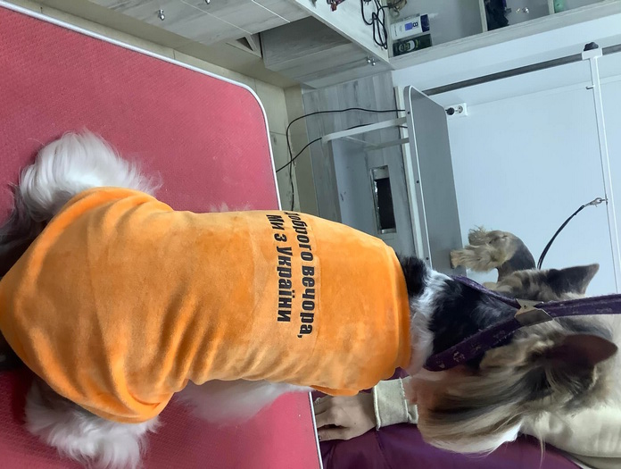 Вінниці домашнім улюбленцям почали замовляти та виготовляти тематичний одяг для тварин. До прикладу, для песика породи йоркширський тер’єр, створили комбінезон персикового кольору із надписом на спинці: «Доброго вечора, ми з України».