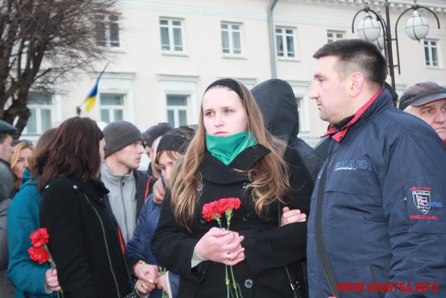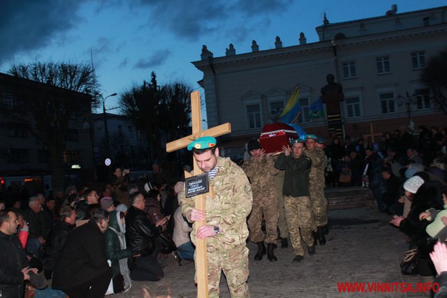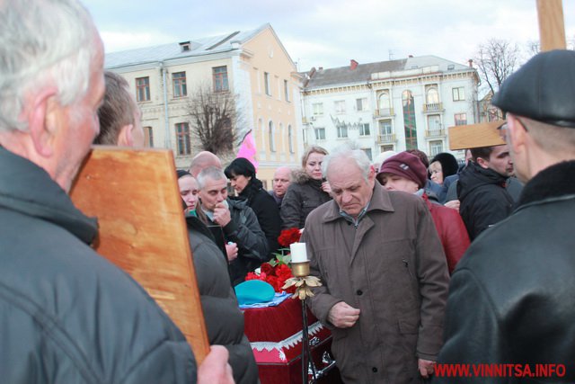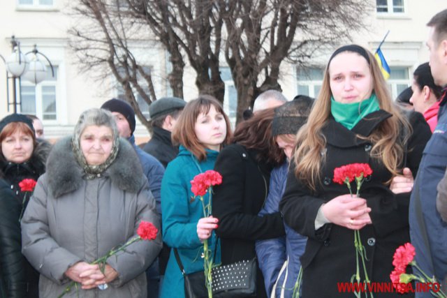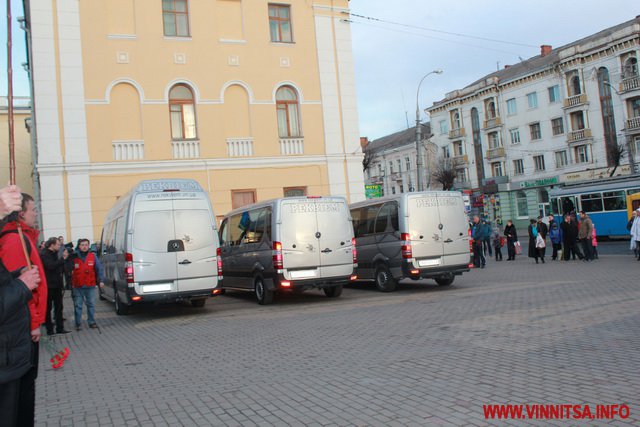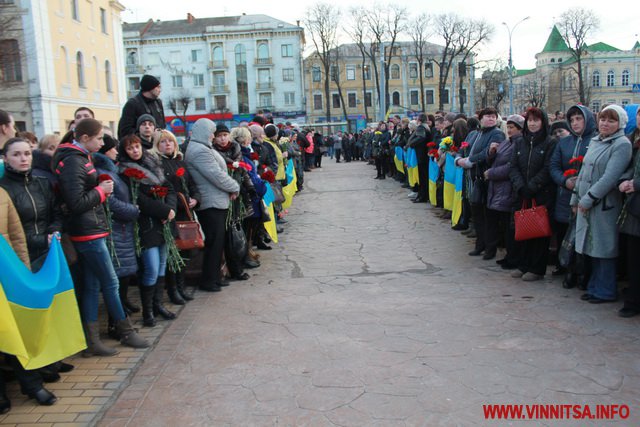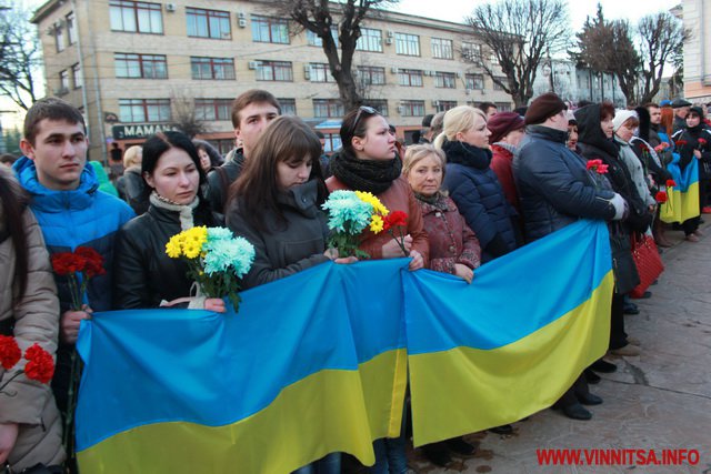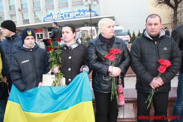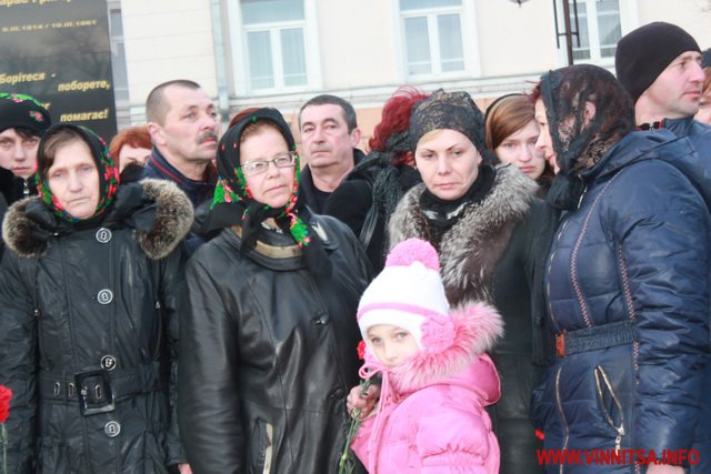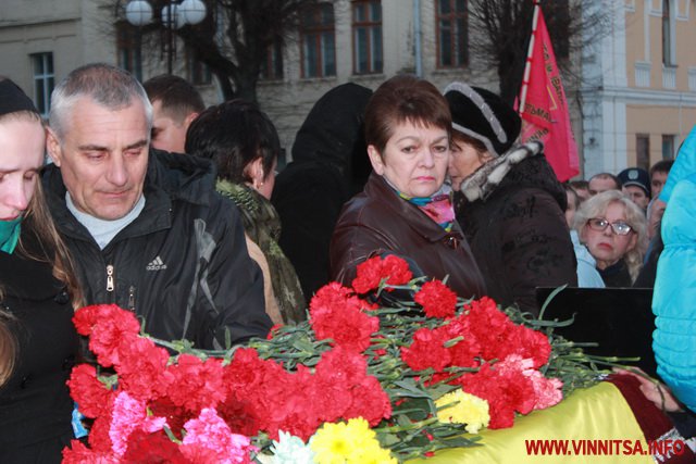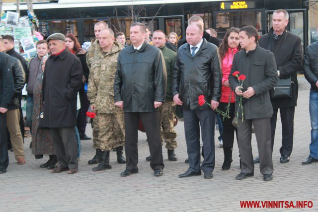 1 квітня на Майдані Небесної Сотні вінничани прийшли зустріти тіла бійців 95ї бригади, які загинули 20 січня біля Донецького аеропорту.
