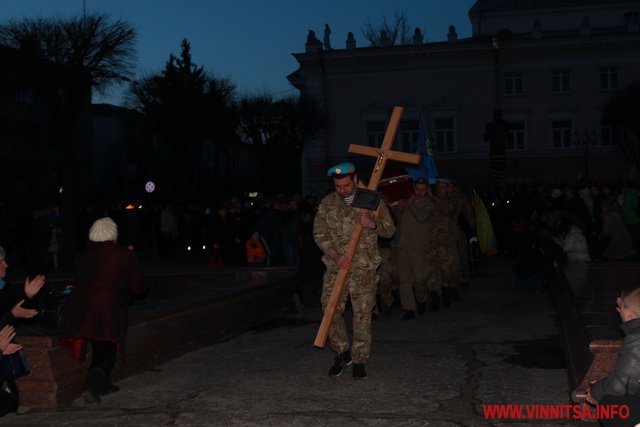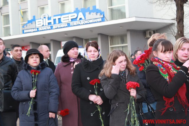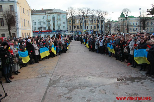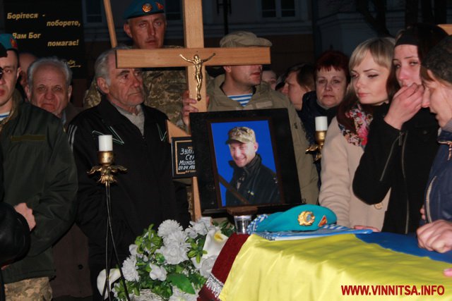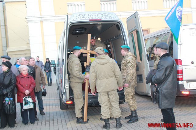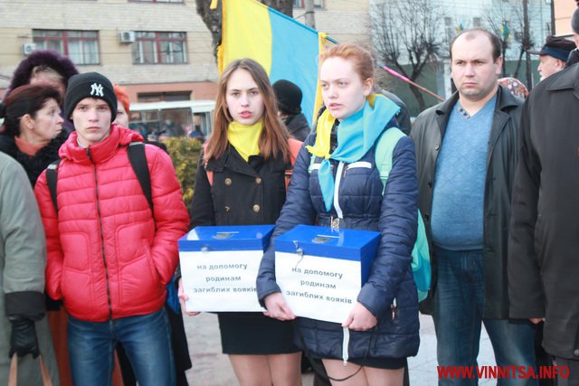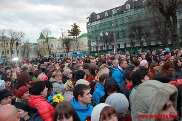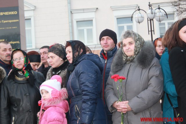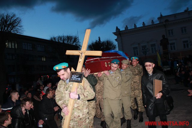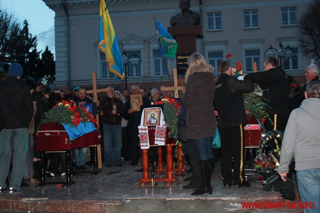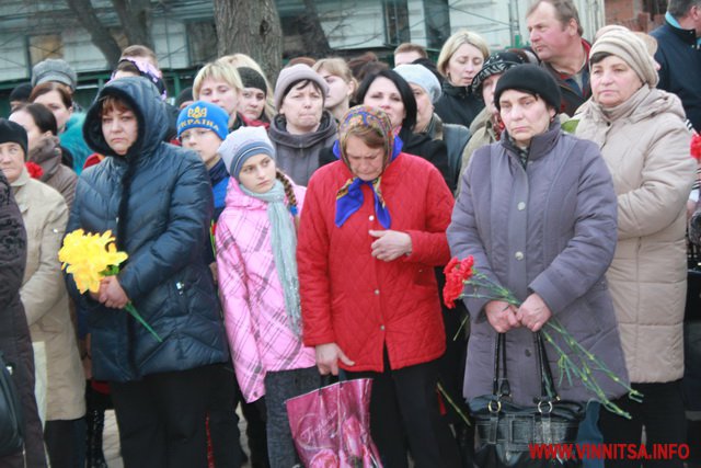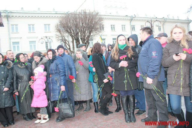 1 квітня на Майдані Небесної Сотні вінничани прийшли зустріти тіла бійців 95ї бригади, які загинули 20 січня біля Донецького аеропорту.