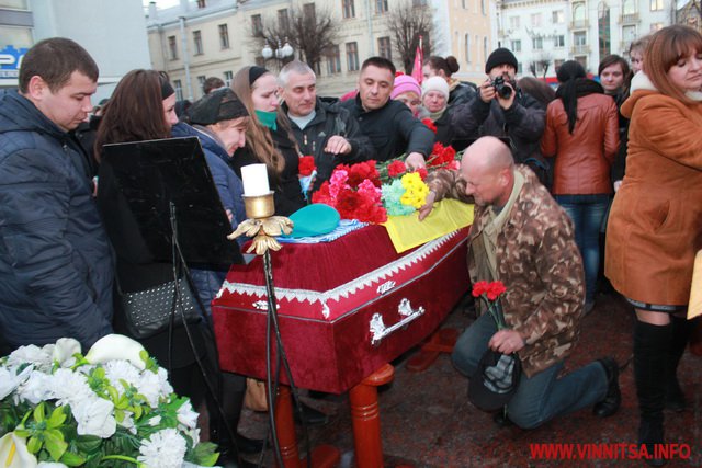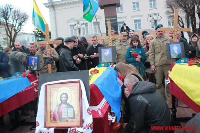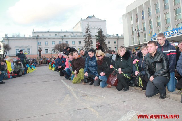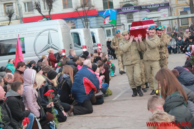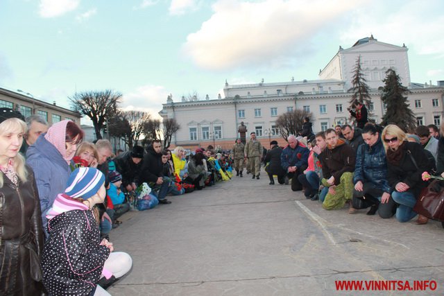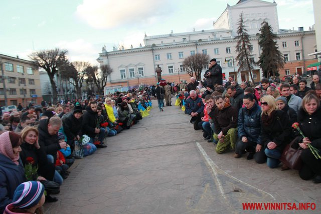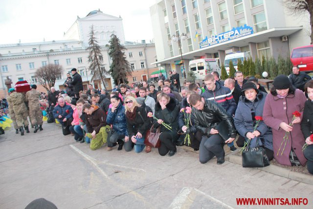 Коли привезли тіла бійців, сотні вінничан стали навколішки, і з словами "Слава Героям!" зустрічали земляків.
