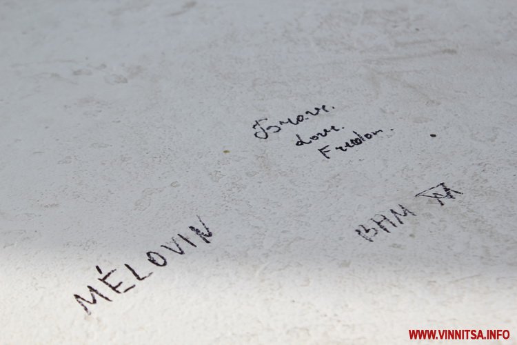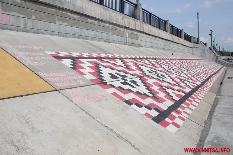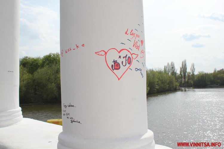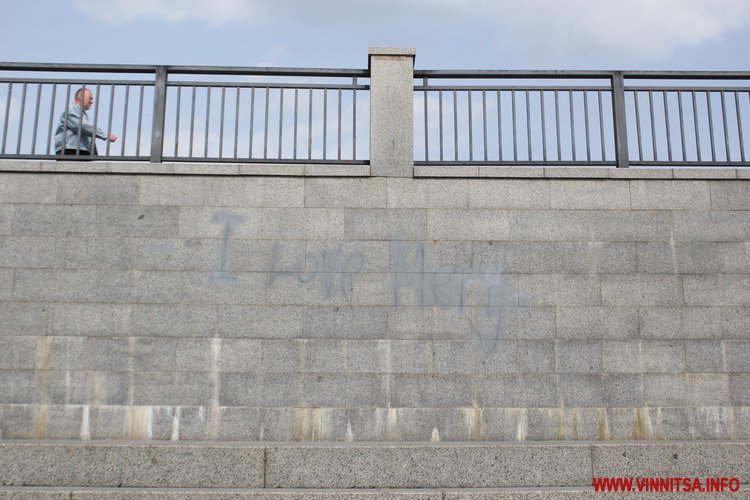 Дівчатам по 13 років, вони учениці однієї з вінницьких шкіл. Показують у бік арки й натякають, там «хтось» розмалював колони ще нахабніше.