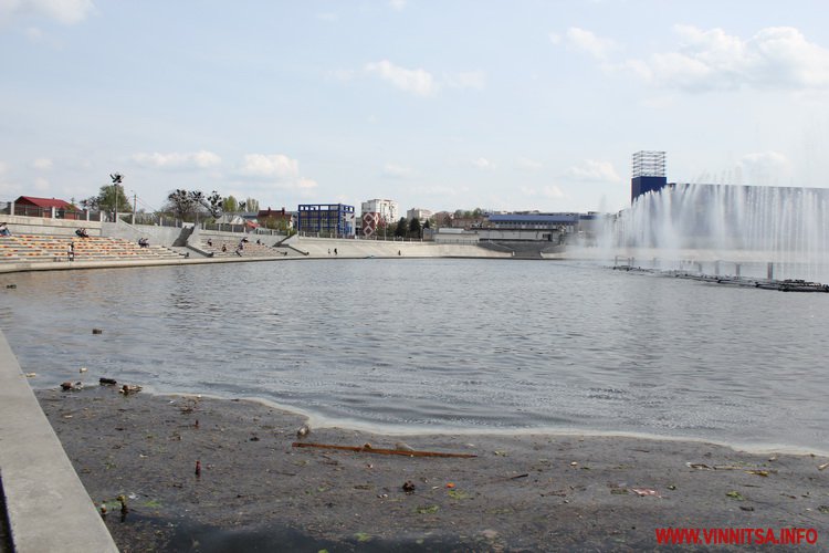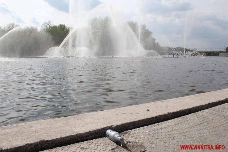 За п’ять днів по цьому набережна дещо змінилася. Пофарбовані після зими арки, розмалювали «мілкі» вандали. Біля водограю плавають десятками порожні пляшки з-під алкоголю. Поміж них, навіть велетенська дохла риба.