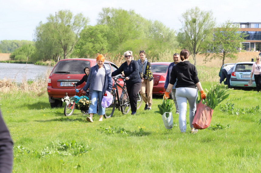 На вихідні у селищі Стрижавка, що за кілька кілометрів від Вінниці, місцеві жителі влаштували квіткову толоку. На березі Південного Бугу, де найбільше полюбляють збиратися, висадили долину нарцисів.