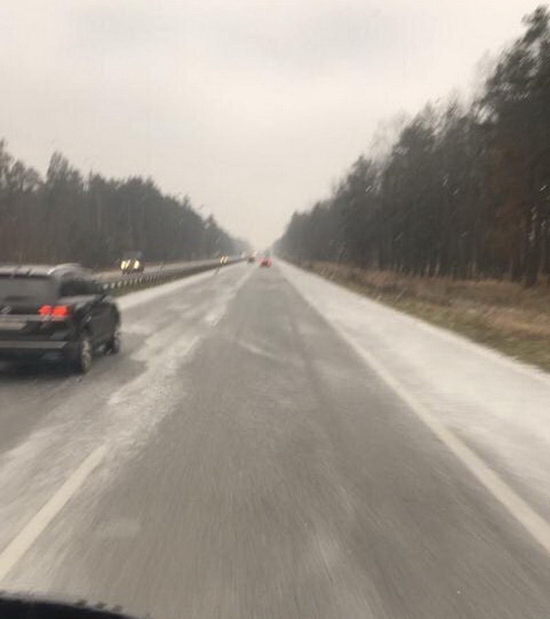 «…проблема в тому що вона неоднорідно слизька. Їдеш - вроді розкатана, підїжжаеш до перехрестя - а там замерзло. Тому хто не звикший до таких умов - бажано утриматися від поїздок», - пишуть в групі.