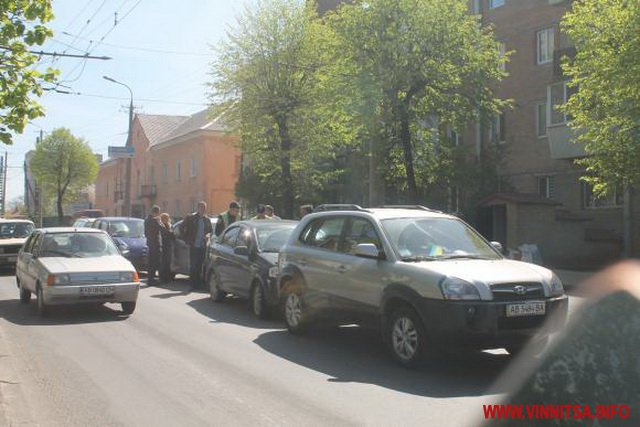 18 квітня у Вінниці на вул. Брацлавській сталась ДТП, в якій зіткнулись 5 автомобілів. Постраждалих немає, лише літня пасажирка «Фольквагена» скористалась допомогою медиків, але трав в неї не було, жінка просто налякалась.