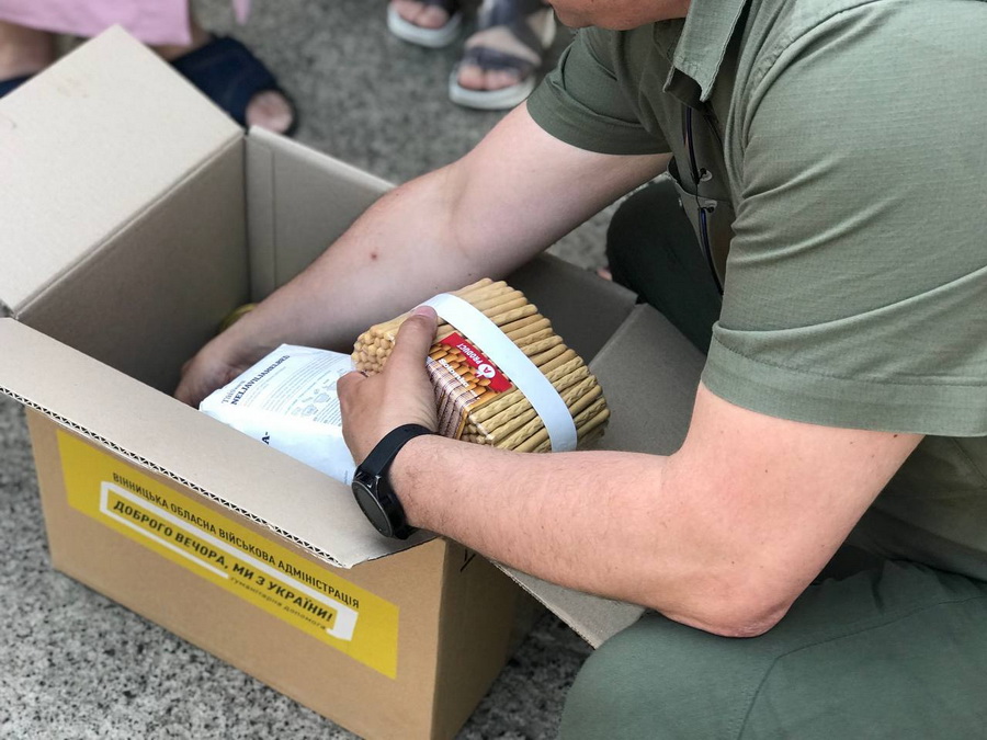 «Гуманітарним штабом ОВА ці набори формуються, завдяки надходженням від міжнародних благодійних фондів та державній допомозі, яку Вінниччина отримує по лінії Офісу Президента України. Такий набір складається із 10-12 кг найнеобхідніших продуктів харчування. Наразі ми маємо можливість надавати громадам допомогу як продуктами і одягом, так і ліками з обласного медичного складу», – каже Андрій Кавунець.