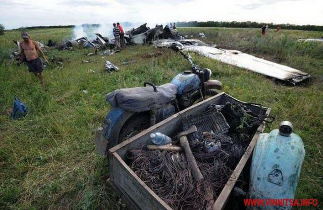 Водночас, в Інтернеті з’явились фото з місця падіння літака, де місцеві фотографуватись на фоні уламків АН-26 і з щасливими обличчями шматували літак на кольоровий метал.