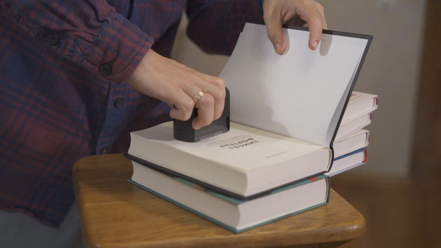 На книги, які вже прибали на аукціоні – наносять відповідний штамп. Сергій Філіпов каже, були випадки, коли до них поверталися книги, придбані на аукціоні. Це розуміли зі штампу. На аукціоні продають лише україномовні видання.