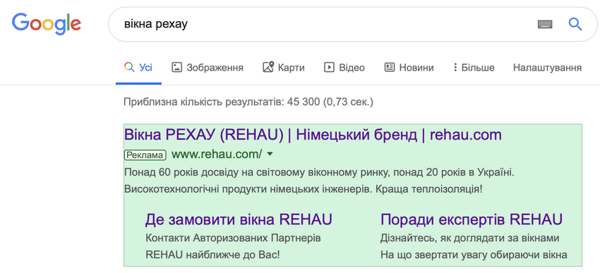Але навіть якщо ви не продаєте онлайн чи працюєте у напрямку b2b (бізнес-бізнес) пошукова реклама має бути. Чому? По-перше, ваші потенційні клієнти чи партнери дуже часто перевіряють інформацію про вас проводячи пошук за назвою компанії у Google.