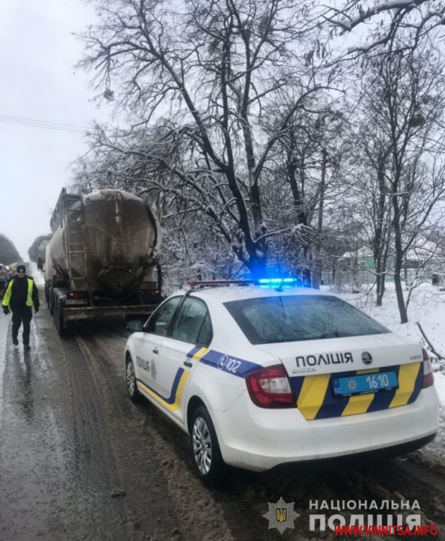 Вночі 12 грудня в Калинівському районі водій вантажного автомобіля «DAF»  не впорався з керуванням транспортного засобу,внаслідок чого з’їхав на узбіччя та застряг у снігу. Водій вантажівки звернувся за допомогою до поліції,  зателефонувавши  на спецлінію «102» .