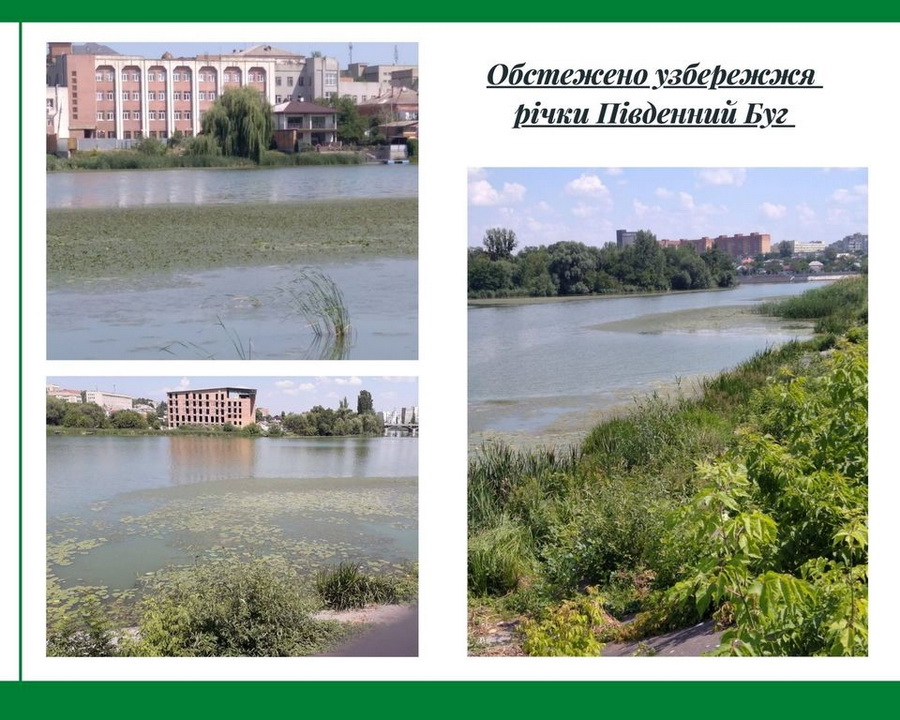 «Було обстежено узбережжя річки Південний Буг на ділянці від Староміського мосту до набережної Рошен та здійснено відбір проб поверхневої води для визначення вмісту забруднюючих речовин.