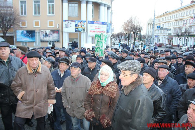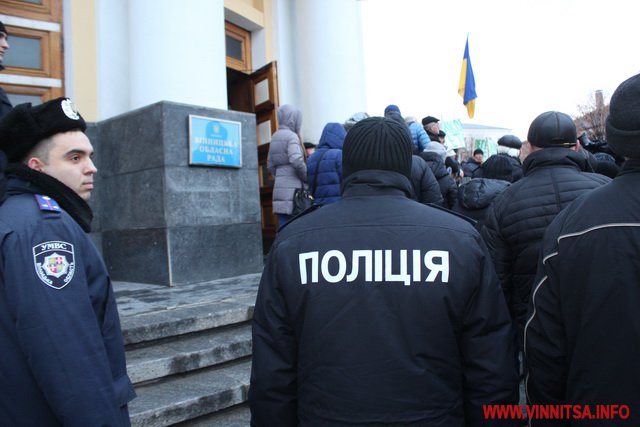 12 грудня у Вінниці колишні міліціонери зібралися на черговий мітинг. Розпочали його біля приміщення «Книжка», на площі Василя Стуса. Звідти масовою ходою прийшли під стіни Вінницької облдержадміністрації. Екс-правоохоронці хочуть отримувати пенсії, як в нової поліції.