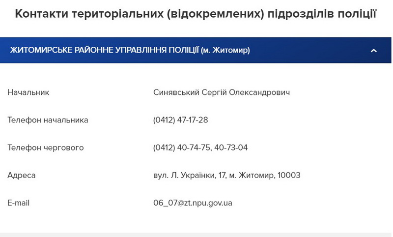 Відповідна інформація опублікована на сайті ГУ НП в Житомирській області.