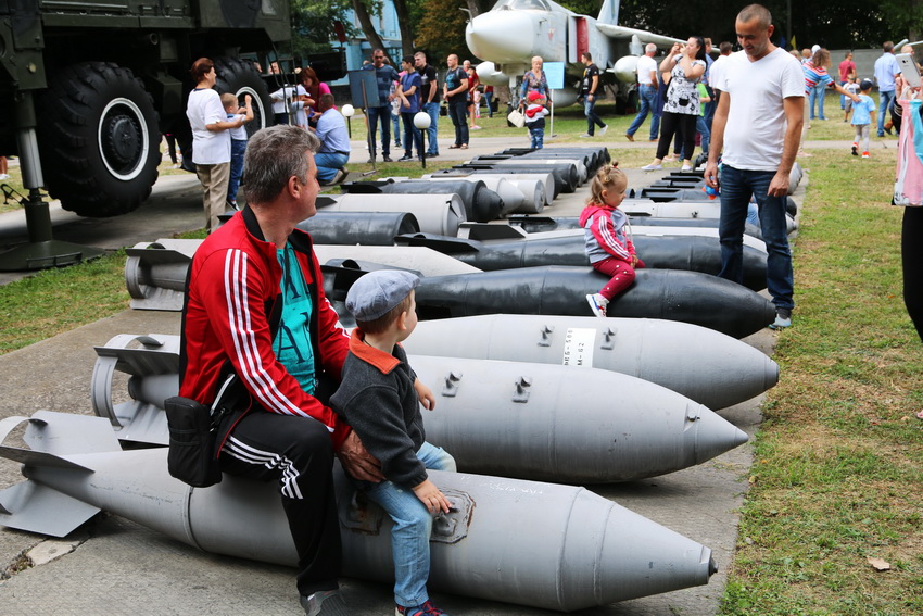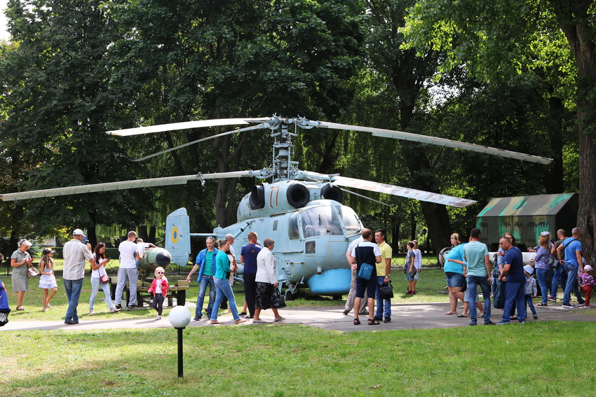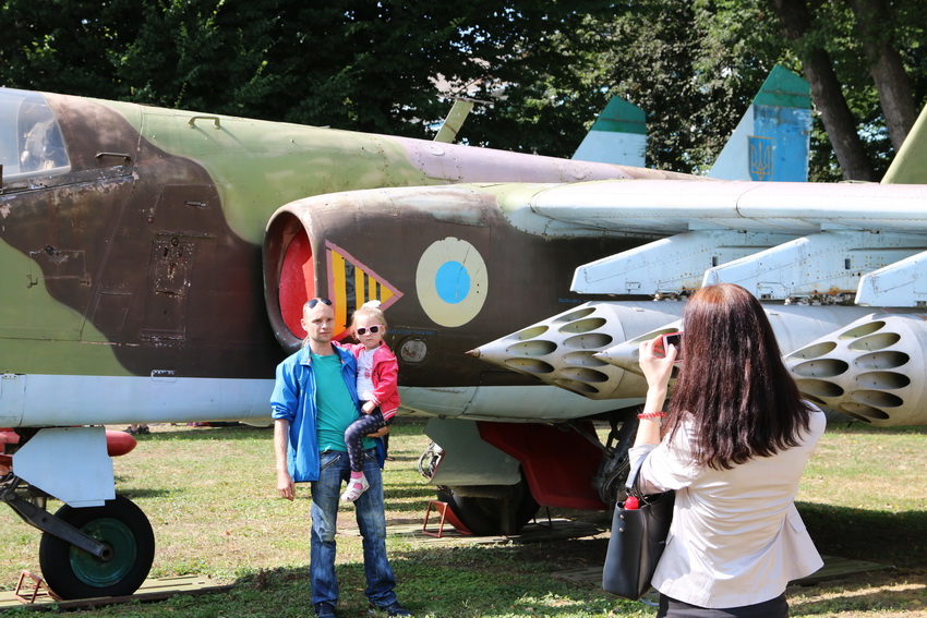 Із самого ранку на території Командування людно. Оскільки сьогодні неділя, вихідних день, кілька сотень вінничан та гостей міста прийшли побачити експозицію військової техніки – літаки, штурмовики, винищувачі, вертоліт. Техніка, яка є на озброєнні та була колись в Повітряних Силах. Дітей висаджували на крила або дах техніки, щоб зробити фото на пам’ять. Люди прийшли цілими сім’ями.