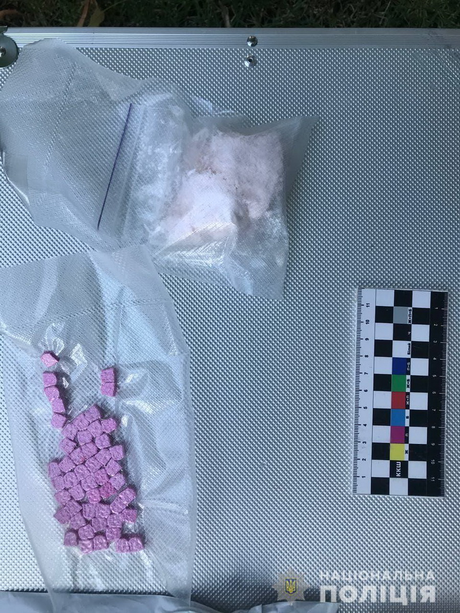 В ході реалізації оперативної інформації, по вулиці Коцюбинського, під час поверхневого огляду 22-річного чоловіка співробітники поліції вилучили у нього наркотики. Затриманий мав при собі поліетиленовий пакет з амфетаміном вагою близько 250 грамів та 50 таблеток екстазі, підготовлених для закладок, які він збирався розставити по місту.