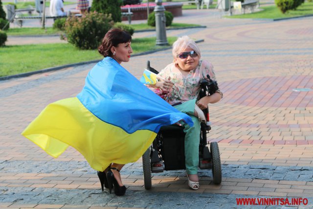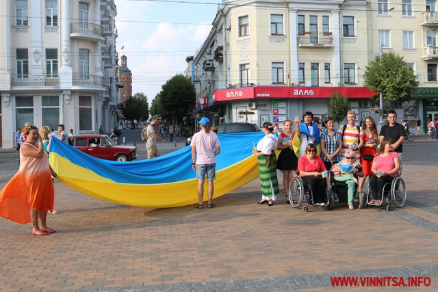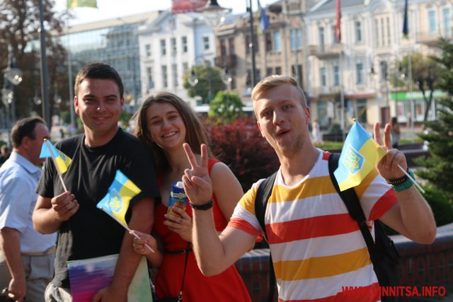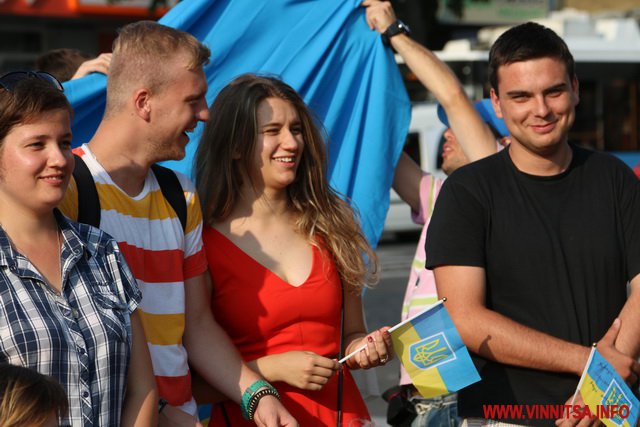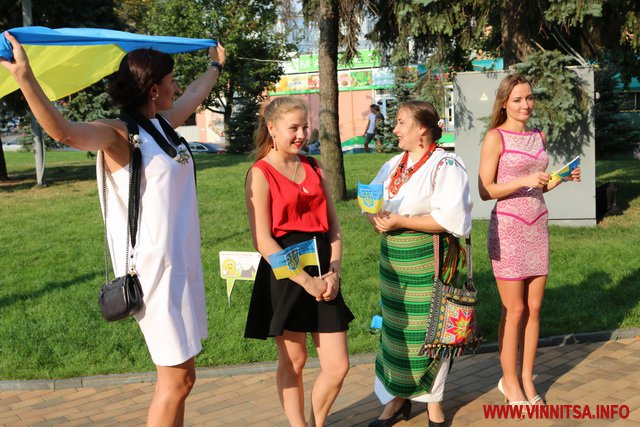 У центрі Вінниці на вулиці Соборній вінничани прийняли естафету від Івано-Франківська в акції «Вільна Україна-25».