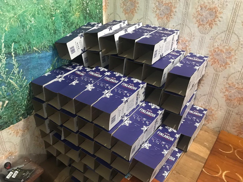 У домоволодінні, в селв Грушка Могилів-Подільського району,проведено обшук, у ході якого, виявлено та вилучено фальсифіковані алкогольні напої без марок акцизного податку, які розфасовано в упаковки типу «bag-in-box» та скляні пляшки із зображенням торгових марок відомих світових брендів алкогольних напоїв, зокрема, Finlandia, Jack Daniеls, Courvoisier, Metaxa, Jаmeson, об’ємом понад 2,2 тис. літрів.