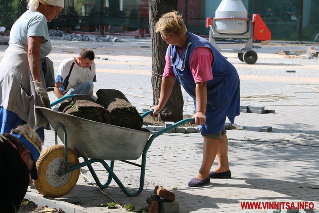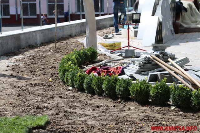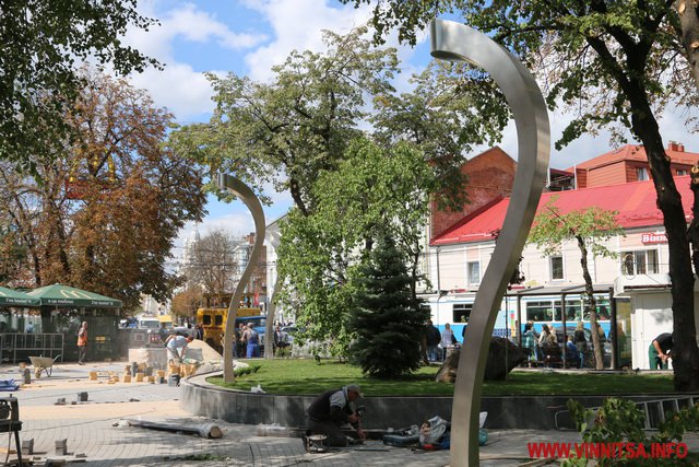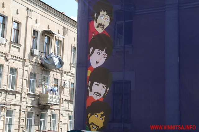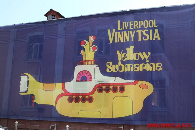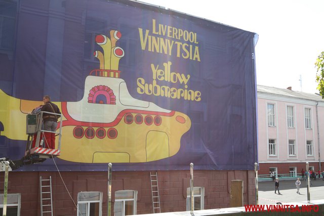 У Вінниці тривають завершальні роботи з реконструкції площі «Ліверпуль». Щоб встигнути до Дня міста, яке святкуватимуть 9 вересня, люди працювали до 3 ночі. Сьогодні тут обрізають дерева і достеляють плитку. На фасаді гімназії №17 прикріпили велетенський банер. На синьому фоні зображені портрети учасників гурту Beatles. А також жовтий підводний човен і надпис «Liverpool Vinnytsia Yellow Submarine».