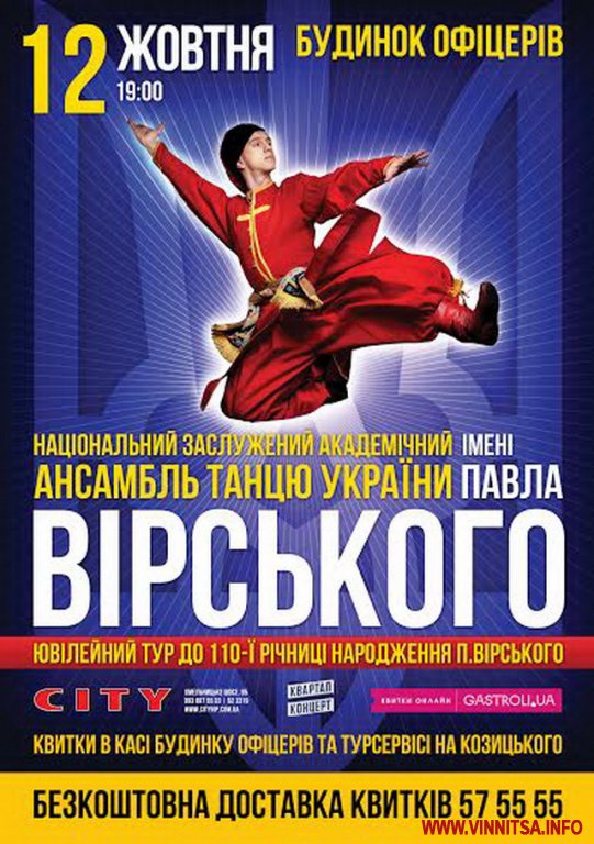 12 жовтня о 19.00 у Будинку офіцерів на концерті славетного Національного ансамблю танцю України імені Павла Вірського у захваті будуть всі вінничани та гості міста!